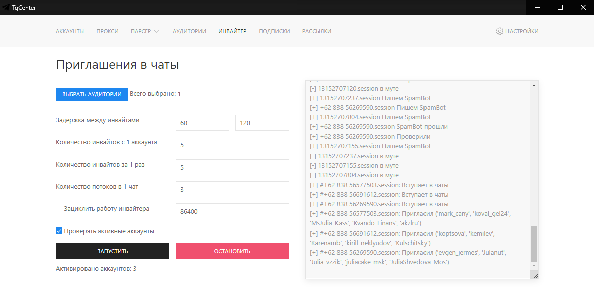 В софте уже установлены дефолтные значения по существующим лимитам в teleram. они периодически меняются. стараемся обновлять их. В сообществе выкладываем актуальную информацию по лимитам