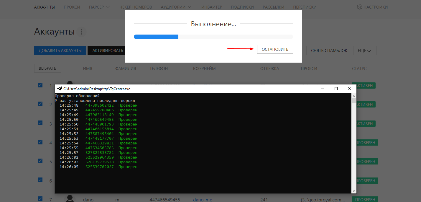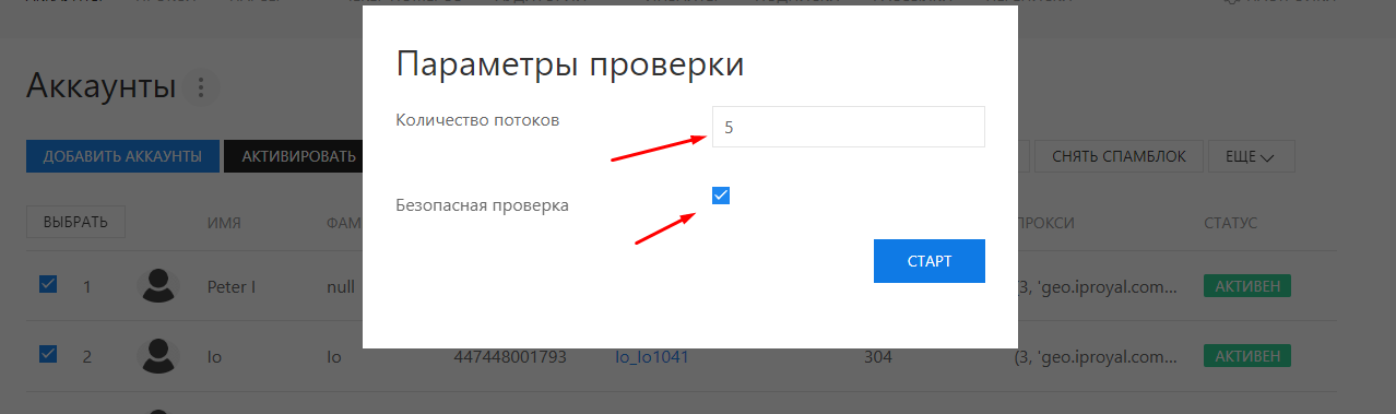 Проверка аккаунтов
