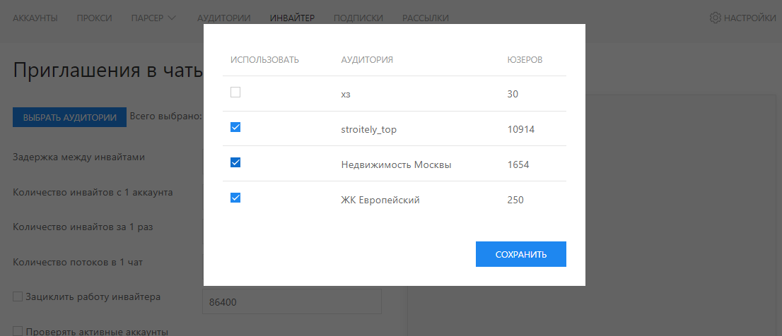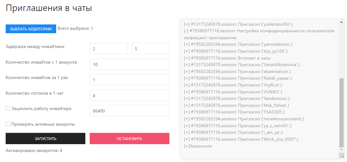 4)Кол-во инвайтов за раз - Количество приглашений за 1 инвайт.