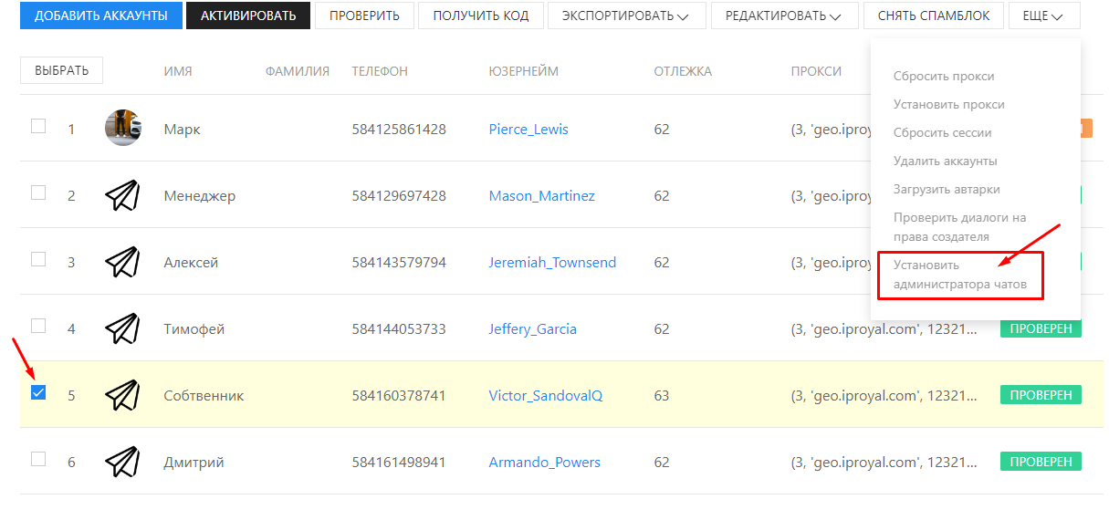 - Назначьте этот аккаунт админом в программе