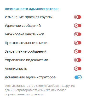 - Добавьте ему разрешение на добавление администраторов