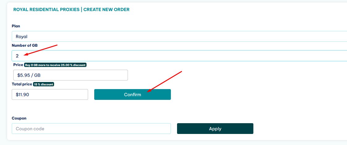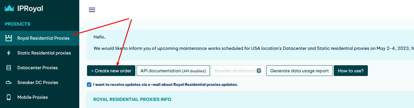 После этого депозит в iproyal будет пополнен, переходите сюда и создавайте заказ