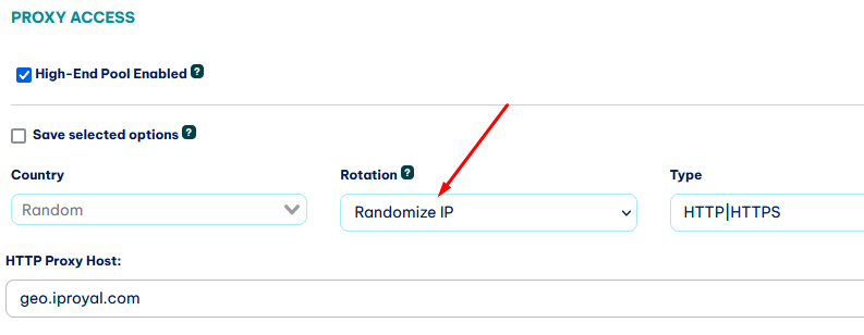 указываете страну и ротацию. Можно указать регион, например азию, европу, южную америку и т.д. и hi-End Pool по желанию.