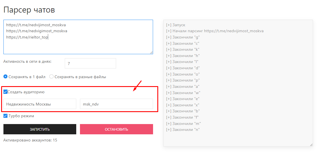 1) Активируйте аккаунты, которые хотите использовать для парсинга.